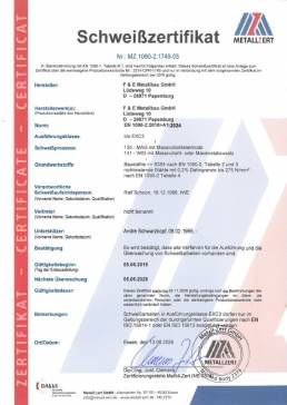 In diese Ausführungsklasse fallen vorwiegend ruhend und nicht vorwiegend ruhend beanspruchte Bauteile oder Tragwerke aus Stahl bis zur Festigkeitsklasse S700, für die mindestens